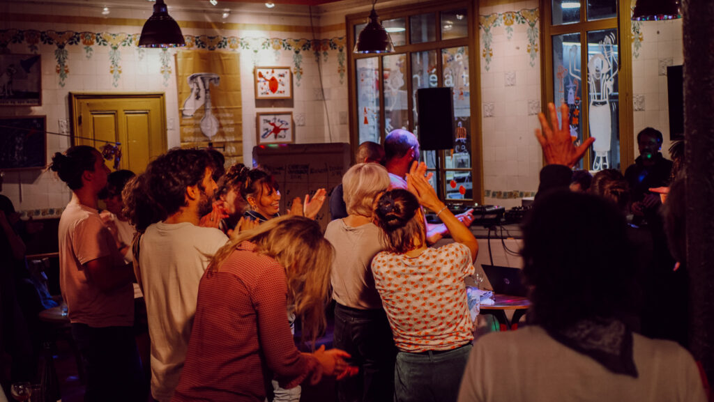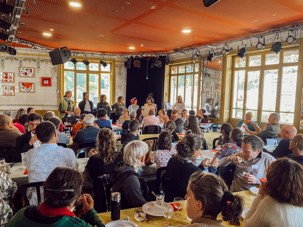La soirée de l’évènement a prolongé les échanges de la journée dans une atmosphère chaleureuse . Elle a débuté par un Apéro des territoires, un moment informel permettant aux participant.e.s de se rencontrer autrement et de renforcer le sentiment d’appartenance à cette communauté. La soirée s’est ensuite animée avec un blindtest qui a créé rires et complicité avant de se conclure par un DJ set assuré par un bénévole de la fraternelle, transformant l’espace en piste de danse inclusive et joyeuse. Ces temps festifs ont rappelé à quel point la joie, la fête et les moments de respiration collective sont essentiels dans les transitions : ils nourrissent l’énergie du groupe, permettent de créer de la confiance et d’apaiser les tensions. En cultivant le plaisir d’être réuni·es, ces espaces contribuent autant que les débats formels à bâtir des trajectoires communes et à soutenir des dynamiques de transformation durables.